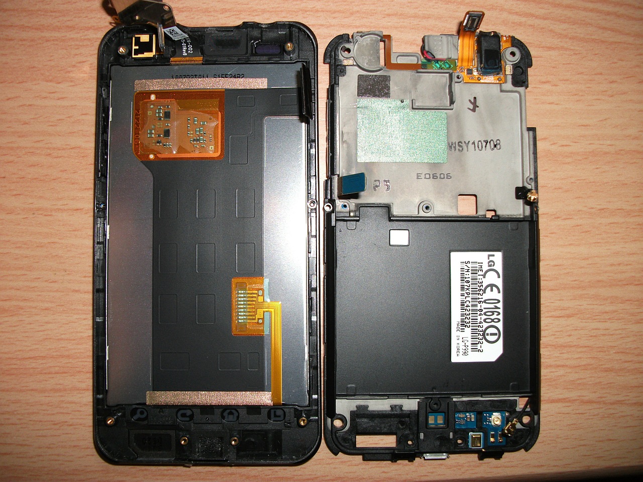 フレームと液晶、タッチパネルフレームを外して