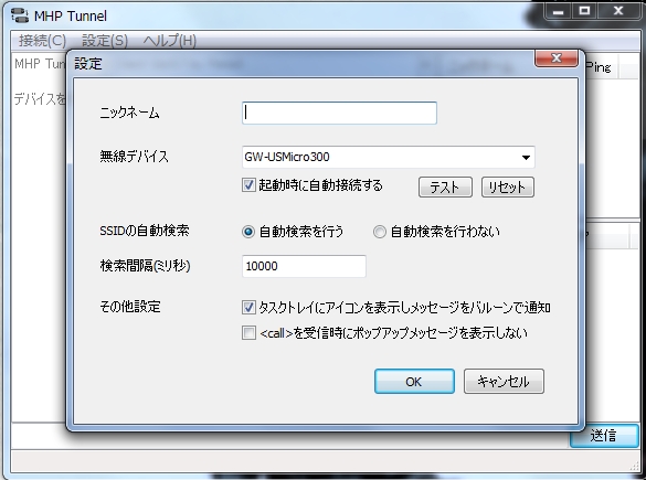 "無線デバイス"という欄はプルダウンメニューをクリックすると自分の使っている無線アダプタが表示されるのでそれを指定してください。