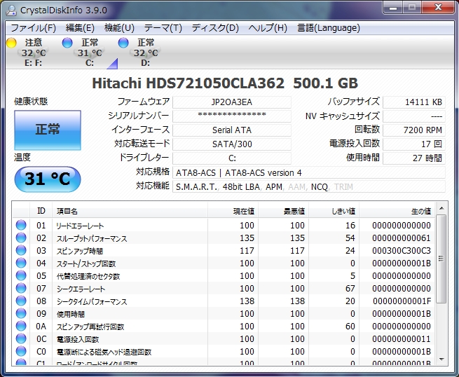 最近のは安いししかも速度も速い!HDT725032VLA360の2倍ほどの速度が出ますね