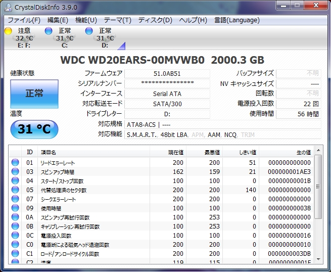 確か2006年に買ってずっと使ってる320GBのHDT725032VLA360が7980円だったので同じ値段で2TBが買えちゃうなんてすごいですね。