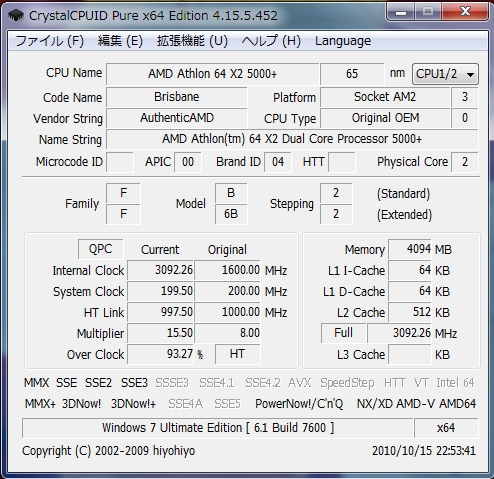 BIOS機能でCPU倍率アップのオーバークロックするとCool'n'Quietが使えないのでCrystalCPUIDというソフトでオーバークロックと省電力動作をさせてます。