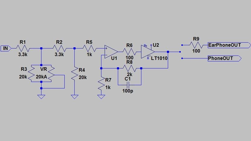 アンプの回路はLT1010のデータシートに載ってたやつを参考にしました。