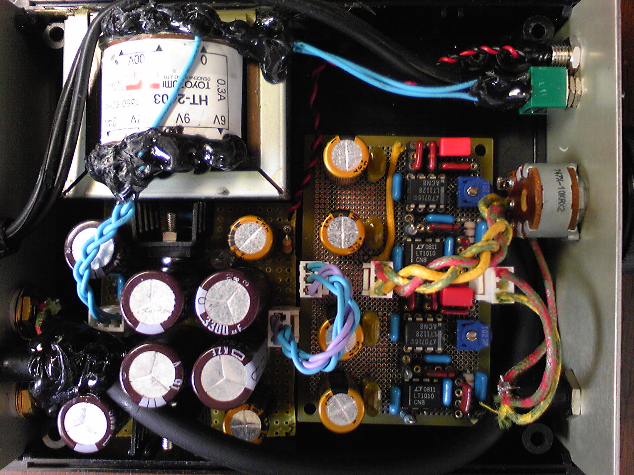 こいつが何号になるのかちょっと覚えてないですが、ボリューム位置によって発振したりバイポーラOPアンプがちゃんと動かなかった2号(確か…)を分解してケースなどを分解して作りました。