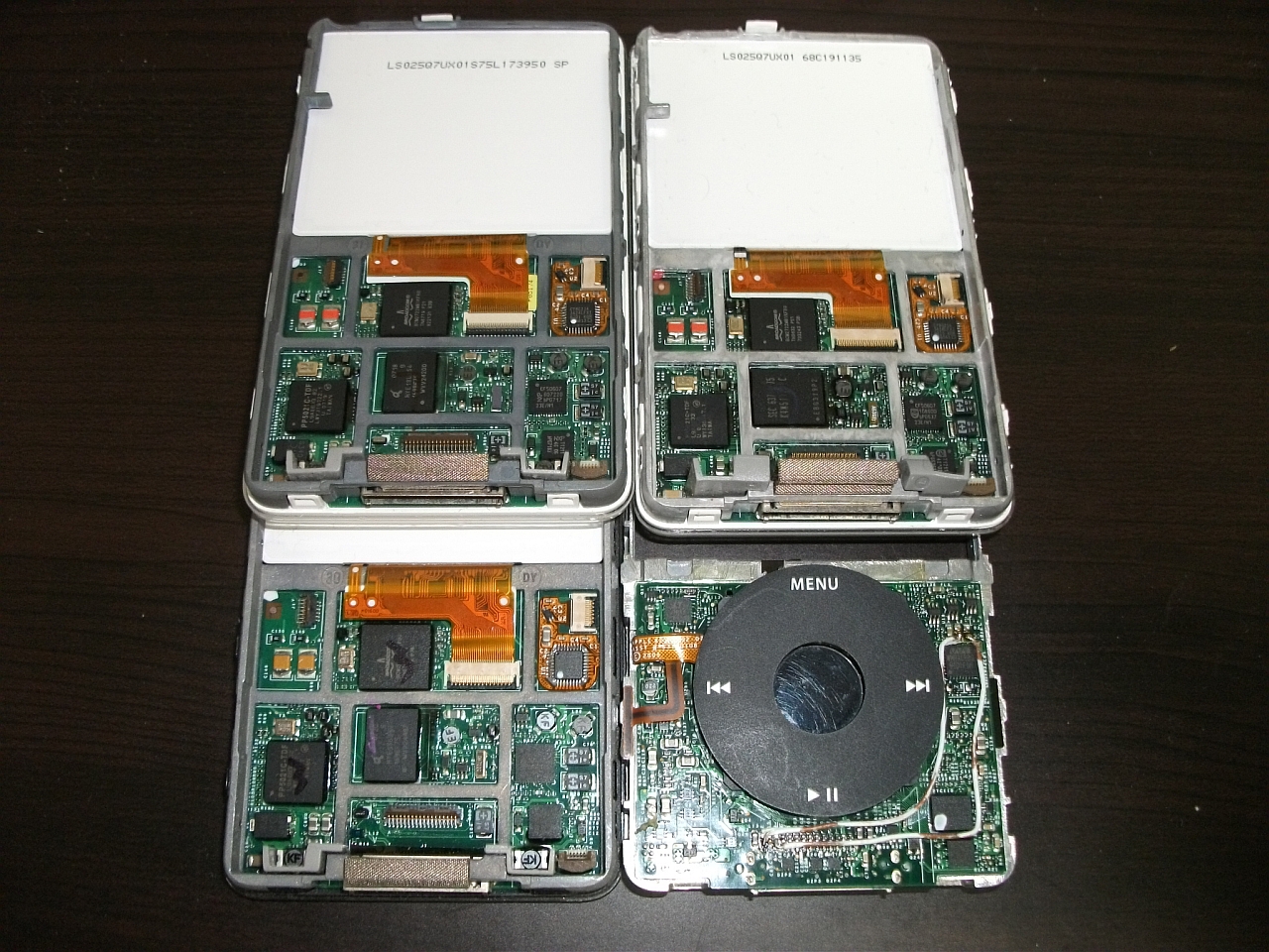 iPodVideoを5.5世代の80GBx1台、30GBx1台と5世代の30GBx2台集めたのでiMod化とSSDの換装をやりました