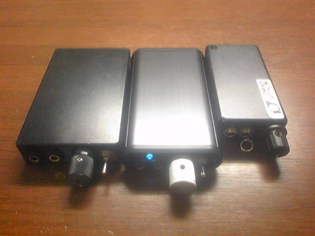 歴代機と並べました。左が5号(紫稍花さんのNo.15アンプ+単三1.2v→5v昇圧版 SW95)右側が6号(nabeさんのOPアンプ+ダイヤモンドバッファアンプ+単四1.2v→5v昇圧版 TW4-2-8)