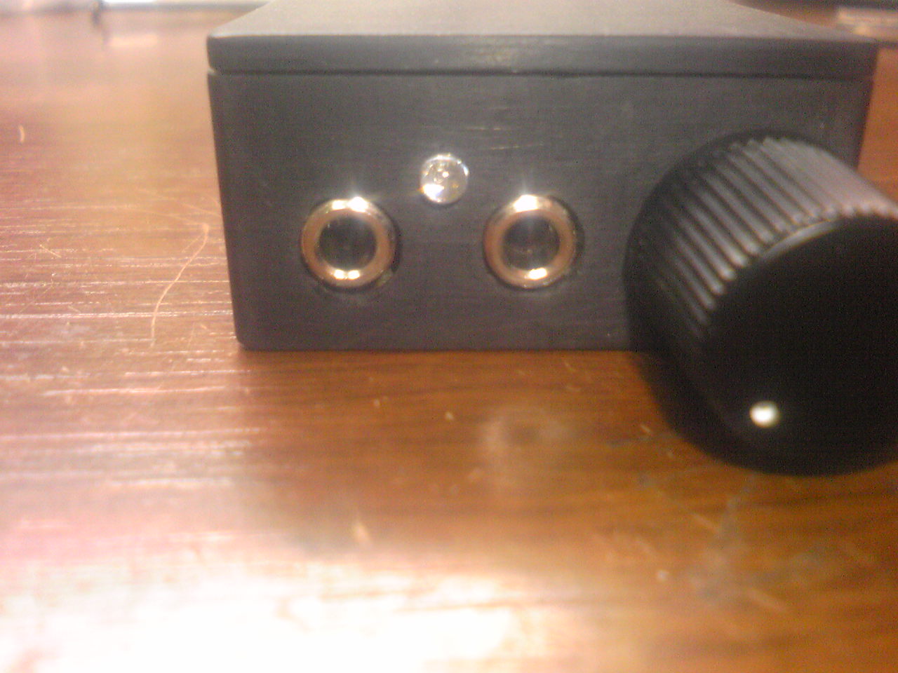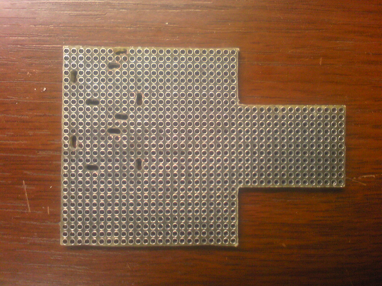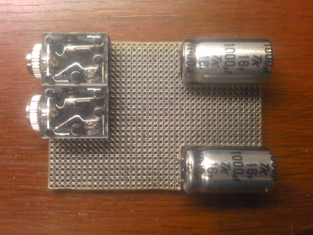 変な穴と右側の切れ込みは、基板実装用3,5mmジャックとコンデンサをつけるためのものです