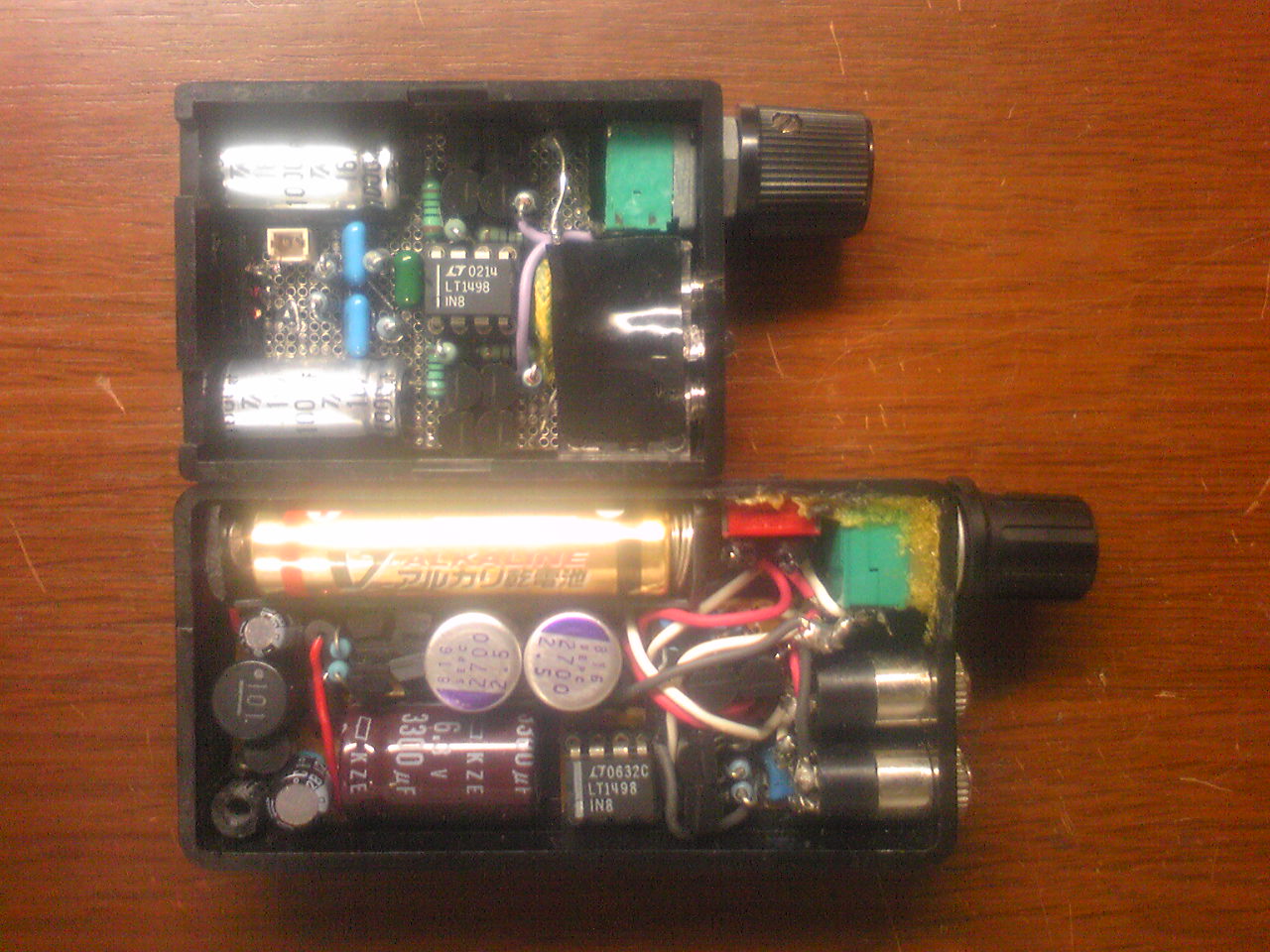 元は650mAhのものですが今は500かそれ以下位になってる様です?電池のもちが未知だったのでソースフォロアも2パラにしておきました。