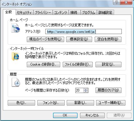 まずインターネット一時ファイルのところにあるCookieやファイルの削除をします。