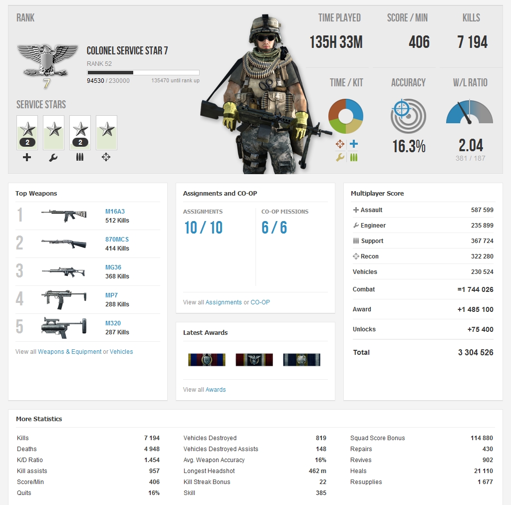 ずっとM16A3と870MCSがベスト武器の取り合いをしてたんですがM16が100ほど引き離しましたね