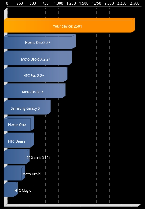 届いたばかりでMoreLocal2とSimejiだけ入れた状態で測ったQuadrantスコアが2501