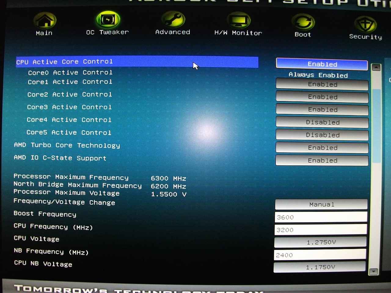 そろそろ6コア3.6GHzのオーバークロック状態だと部屋の温度がかなり上がってしまうのでコアの無効化をして発熱を減らしてみました