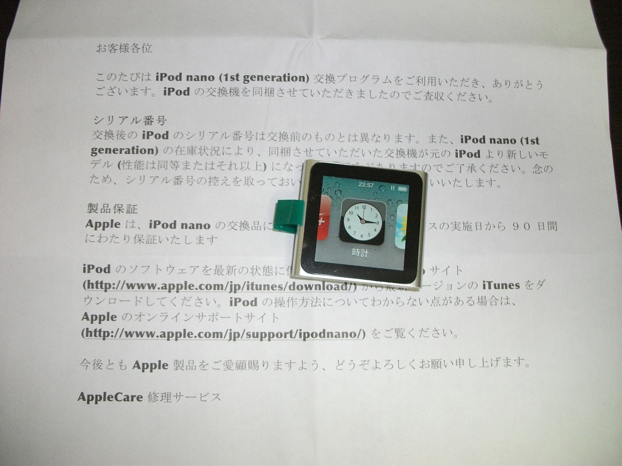 初代iPodnanoの2GBモデルをアップルの交換プログラムにだしたところ現行モデルの8GBになって帰って来ました