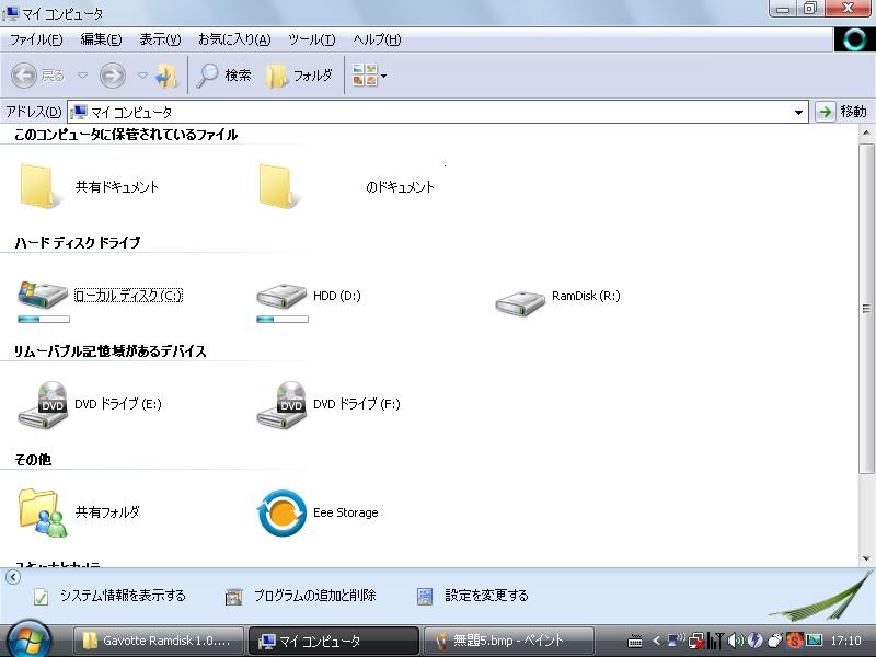 Gavotte Ramdiskというソフトを使ってメインメモリーの一部を仮想HDDにして有効利用します。